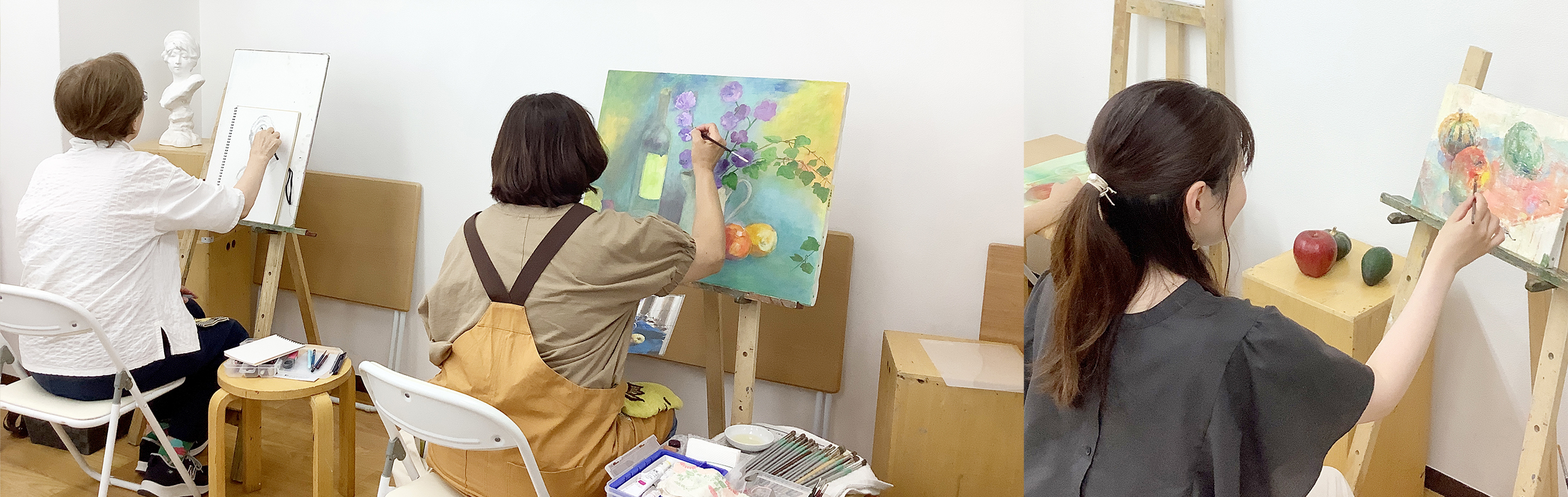 - お仕事のスキルアップに基礎を身につけたい方 等の経験者もたくさん通われています。ここには絵を通じてたくさんの出会いがあります。